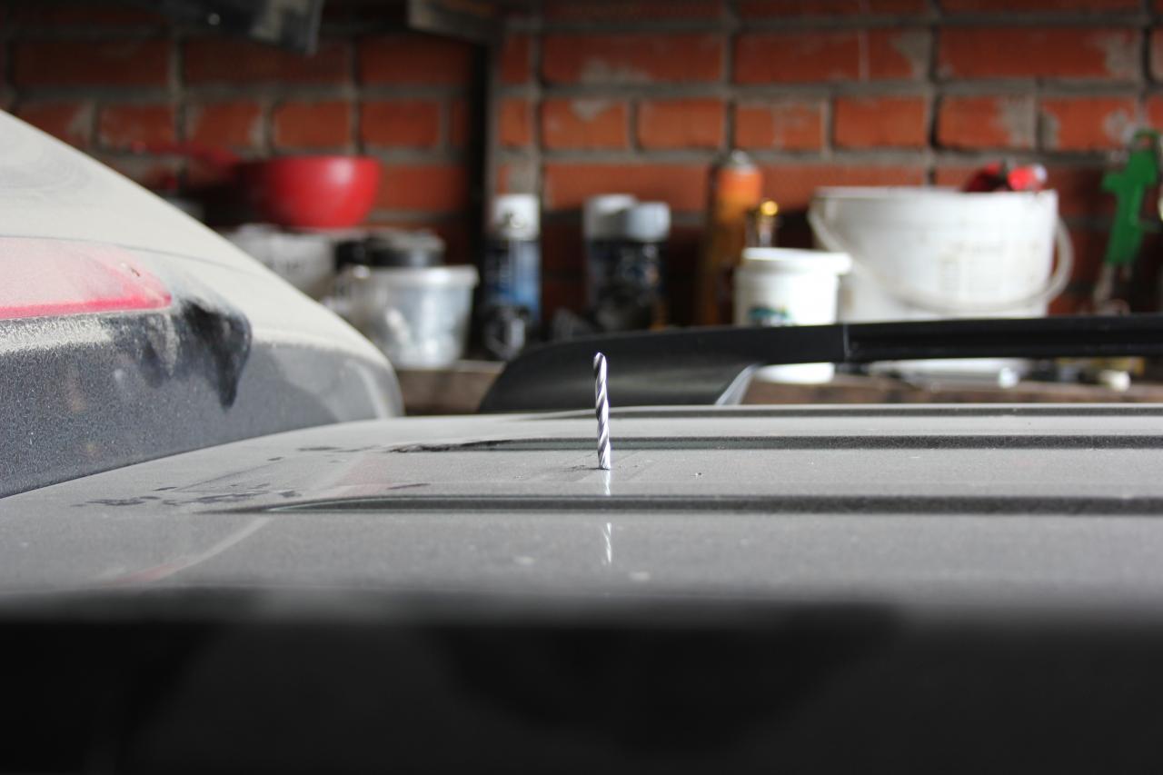 Шуруповерт и керцовка диаметром 50 мм быстро и качественно тоже, только есть один плюс - если ставить антенну без разбора потолка, через салонный плафон, то шлифмашинкой туда забираться неудобно. И не остается абразивной пыли.