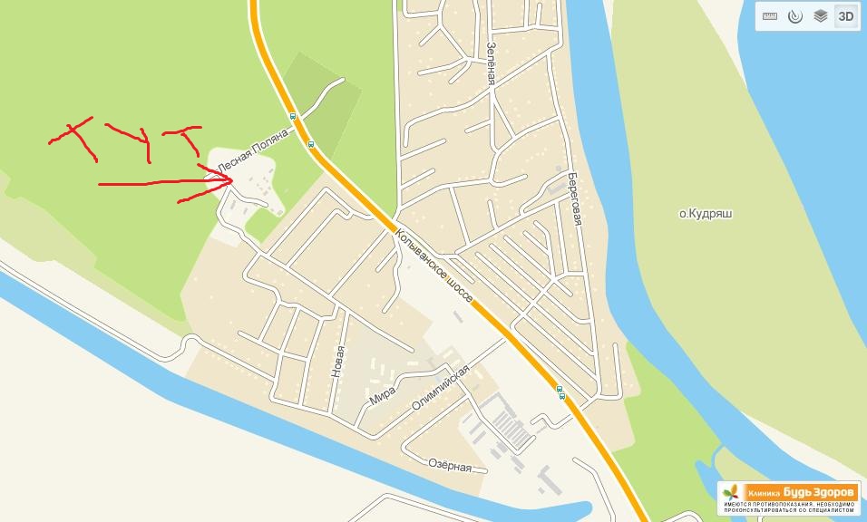 Ехать надо в сторону Кудряшей но не доезжая их кто ехать надо как на поляну где отмечали ДР СиБири. Если ехать со стороны ул Большой проезжаем пост ГАИ и едим в сторону Кудряшей по Левой стороне будет Арка с надписью Кудряшовская Заимка въезжаем в неё едим метров 200 и мы на месте.