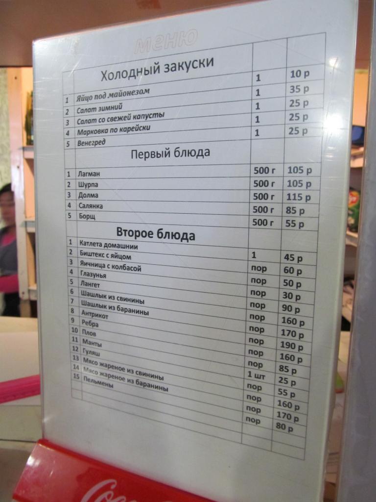 Не доезжая до Болотного примерно 30км. стоит избушка на куриных ногах :hi_hi_hi:, так вот там кафе есть, это меню в нём. Читаем внимательно! uchit'