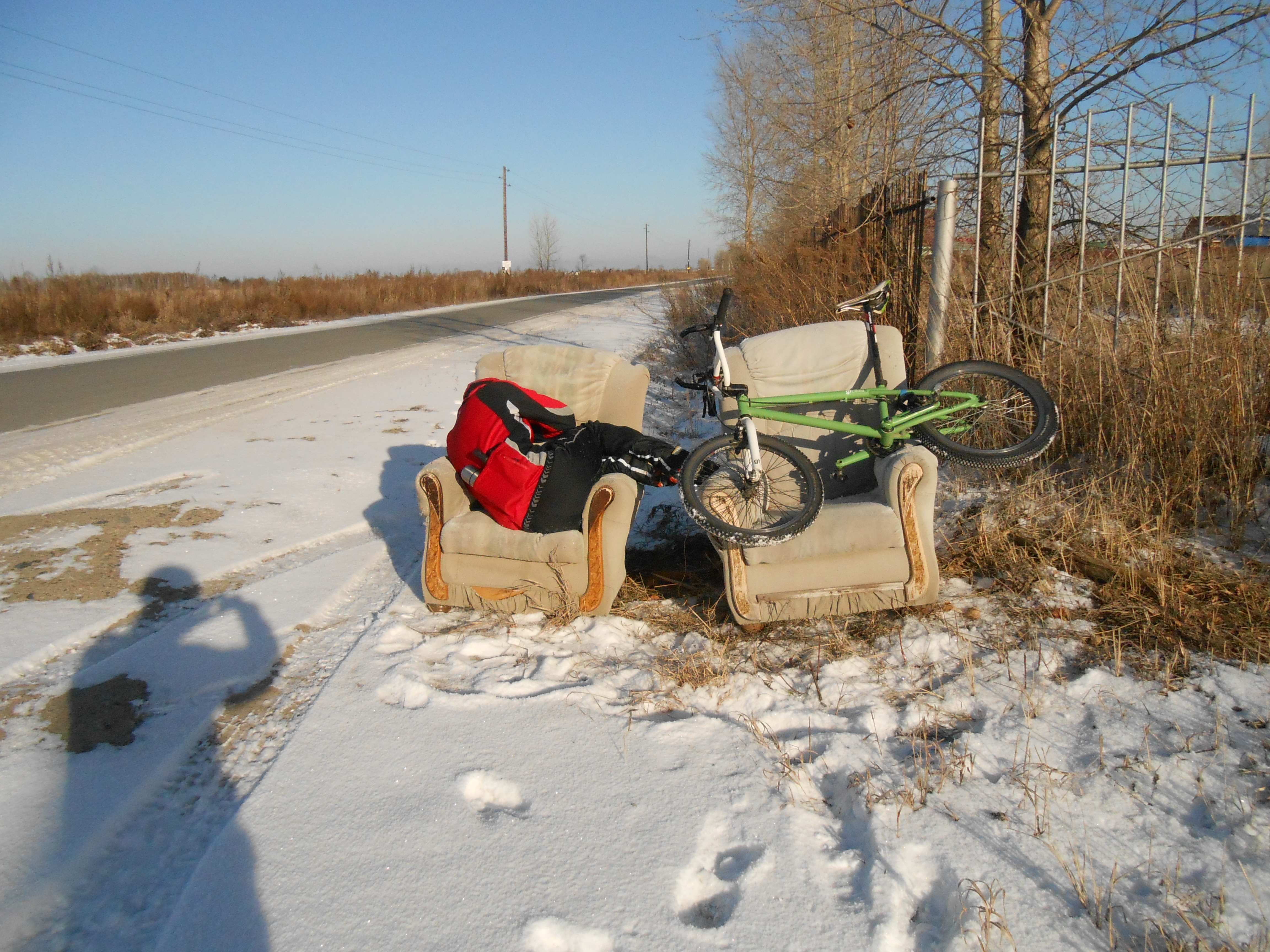 Открыл зимний велосезон. В субботу проехал больше 70 км. По кольцу от Димитровского через Кудряши, СО и Заельцовский парк. Вел не ехал совершенно из-за застывшей смазки в цепи и втулках