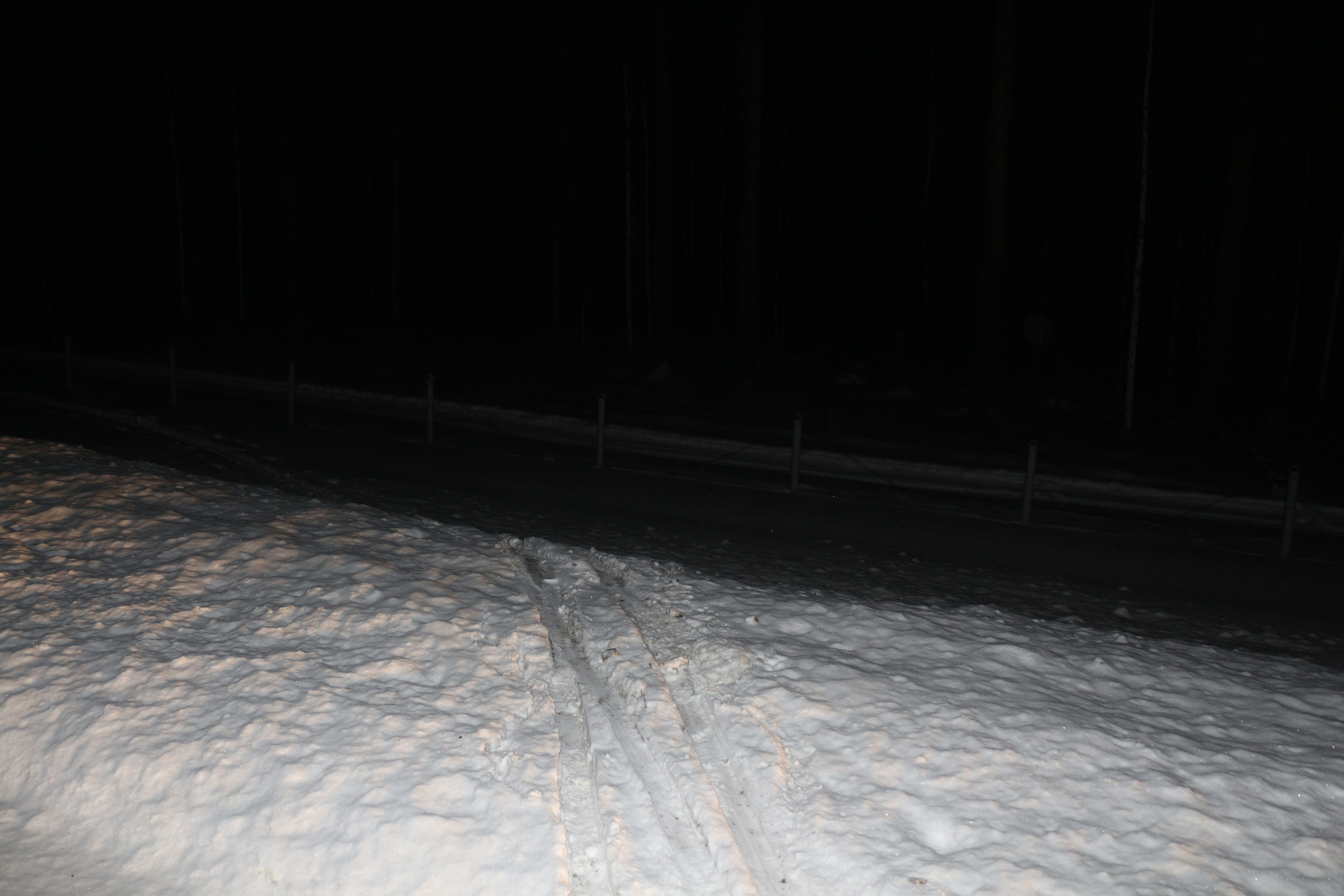 Это Михаил. Между 20-19 кмвыход косули на шоссе свежа минут за 10-15 перед нами и ушла в лес. помёт оставила уже не дымился но пахнет знатно... В районе 18км перд знаком Зона отдыха выезд снегохода. В обратном направлении - на 19 км- заход лыжника на обочине лыжи одел, пошёл в лес.