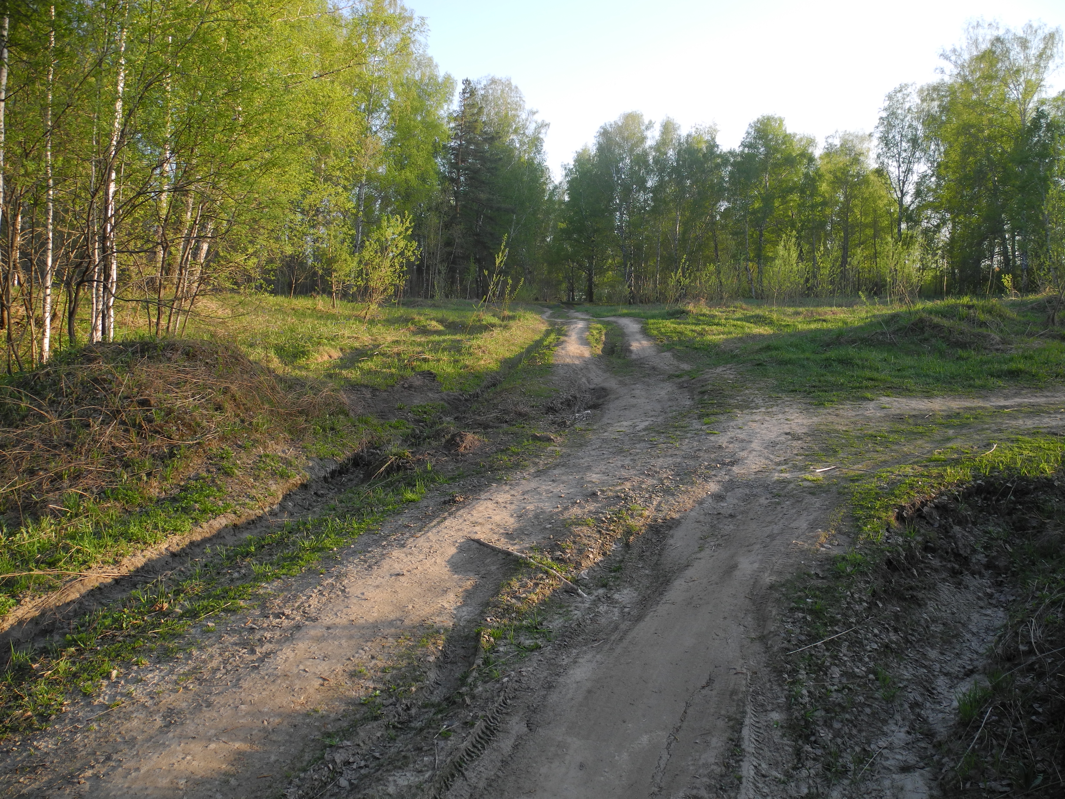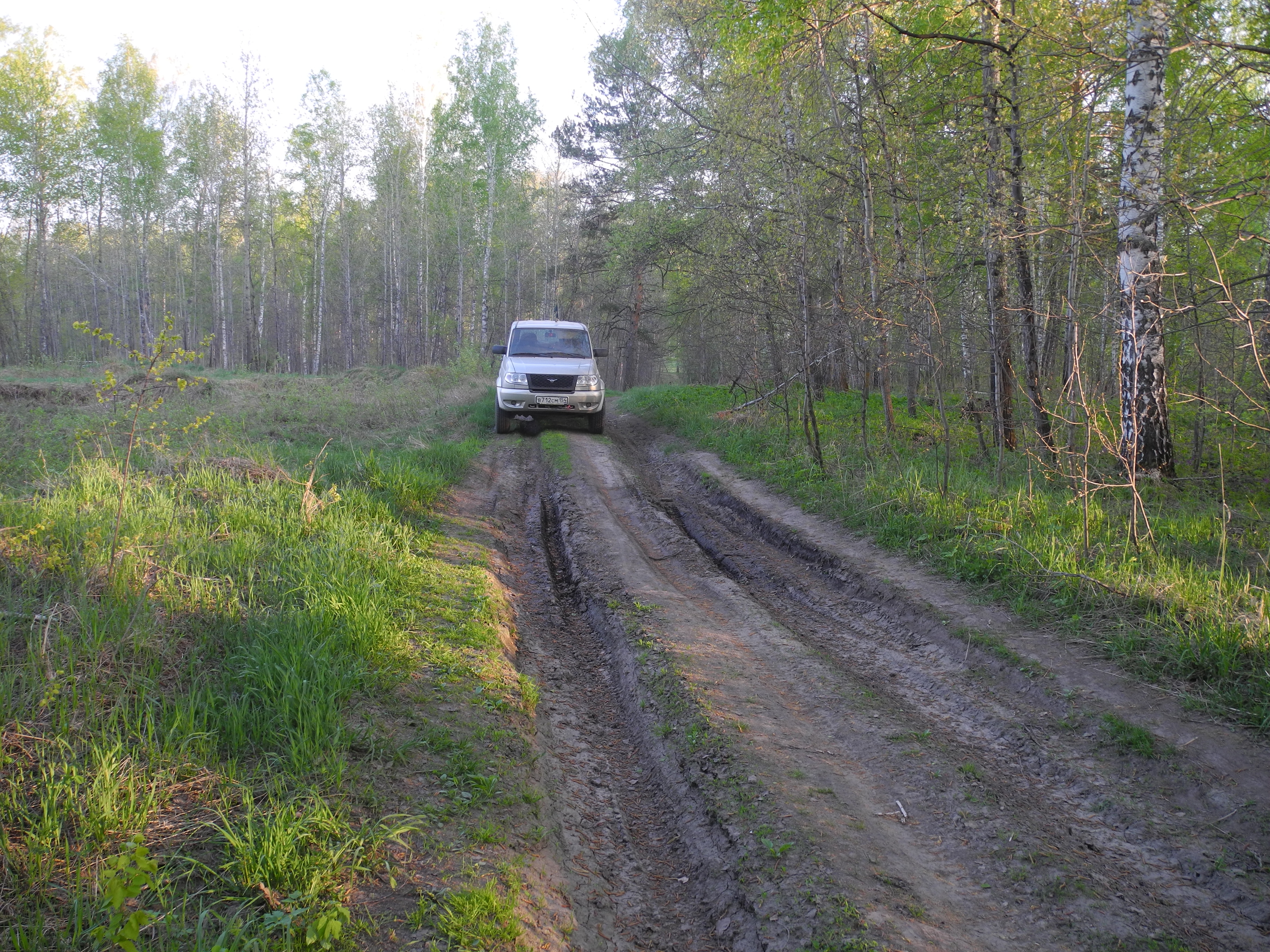 Вид на поляну из северо-восточного угла, откуда въезд: Вид с западной стороны: На подъезде имеется полянка поменьше (на переднем плане). Главная поляна видна впереди за деревьями: Неровный просёлок сразу после поворота с гравийной дороги: Ещё нехорошее место: