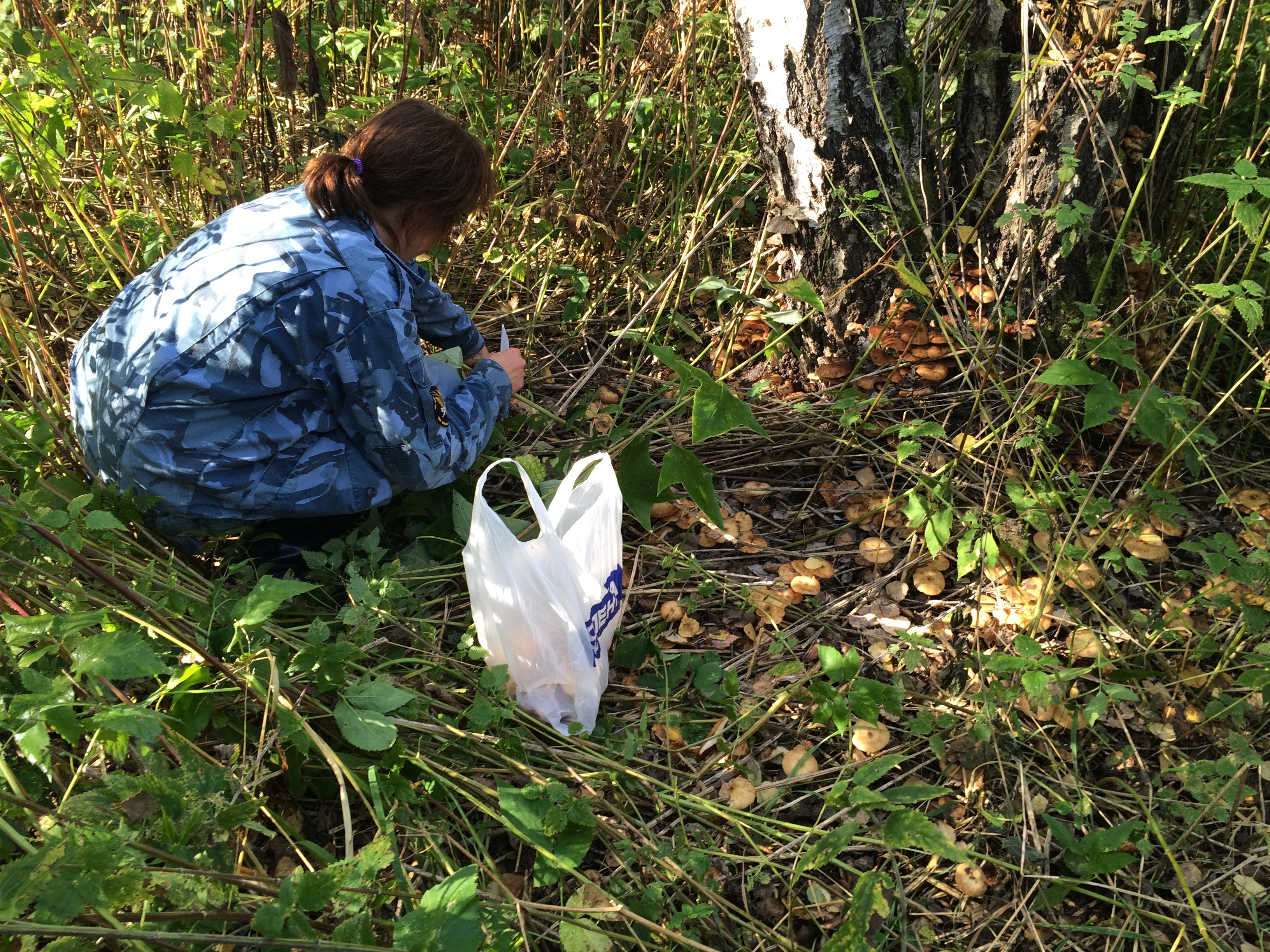 Вчера пробежалась по своим местам за Плотниково. Как и везде опятки разные. И гнилые лопухи, и калиброванные под 5-и рублёвую монетку.