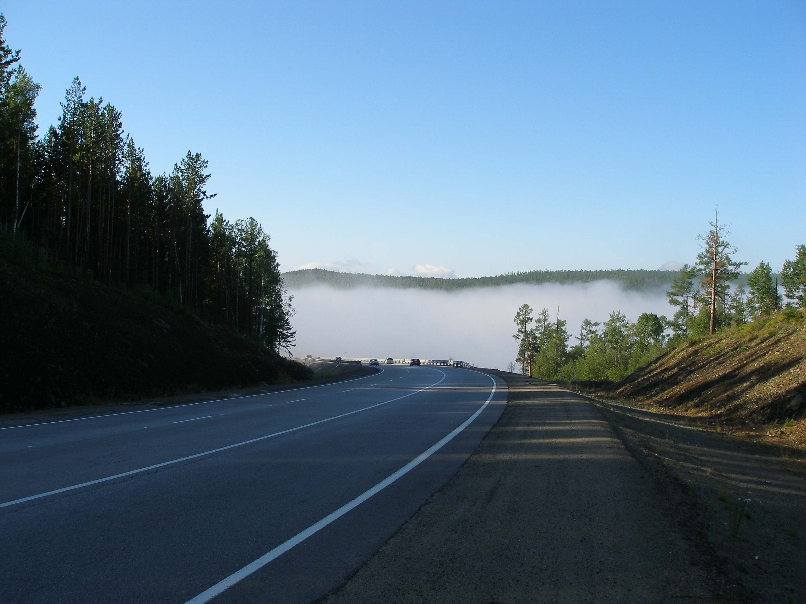 Утро было туманным. Умывшись и позавтракав в кафе, двинулись в сторону Иркутска. На перевалах лежал утренний туман, некоторые участи ехали практически в «молоке».
