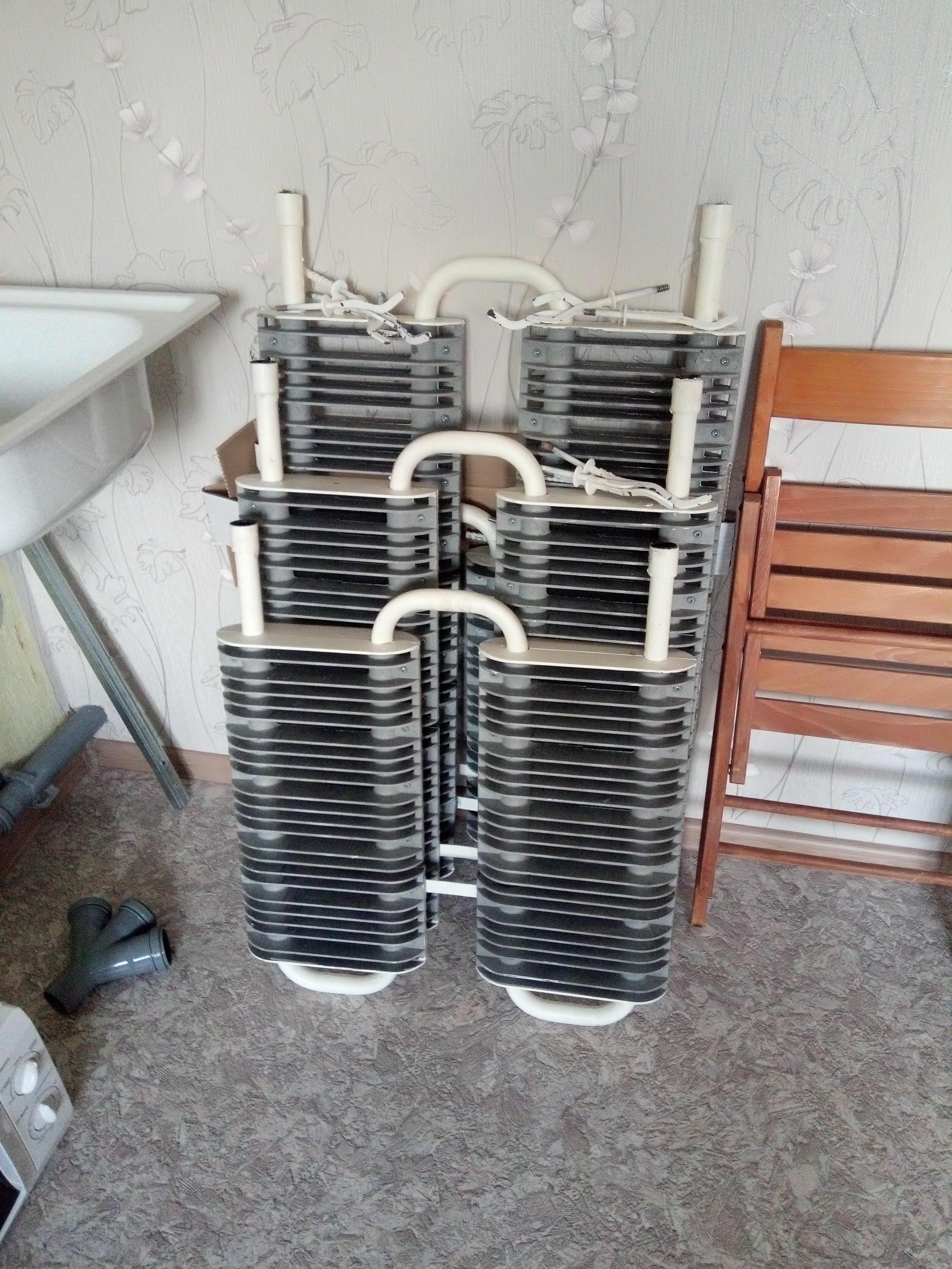 1. радиаторы отопления - 4 шт. Сняли с квартиры "под ключ", так как поставили другие. Размер разный.
