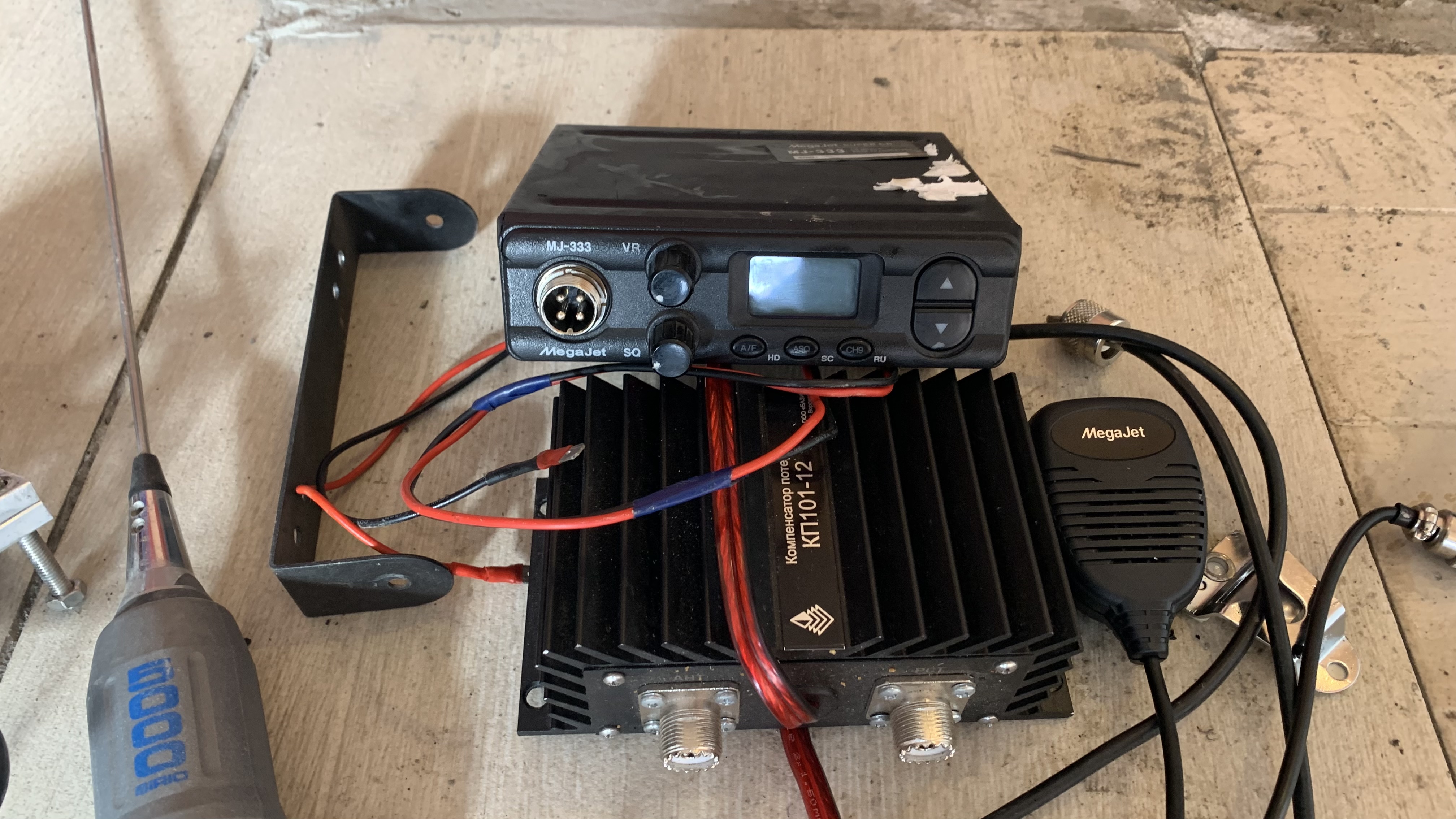 Продам комплет,мегажуть 333,полностью рабочая,антена перферио 5000, с креплением на релинг,провод 3 метра,коннекторы все пропаяны,в давесок отдам усилитель около 30вт с пепеходным проводом,два года пользовался,без него,цена всему 5000,торга нет