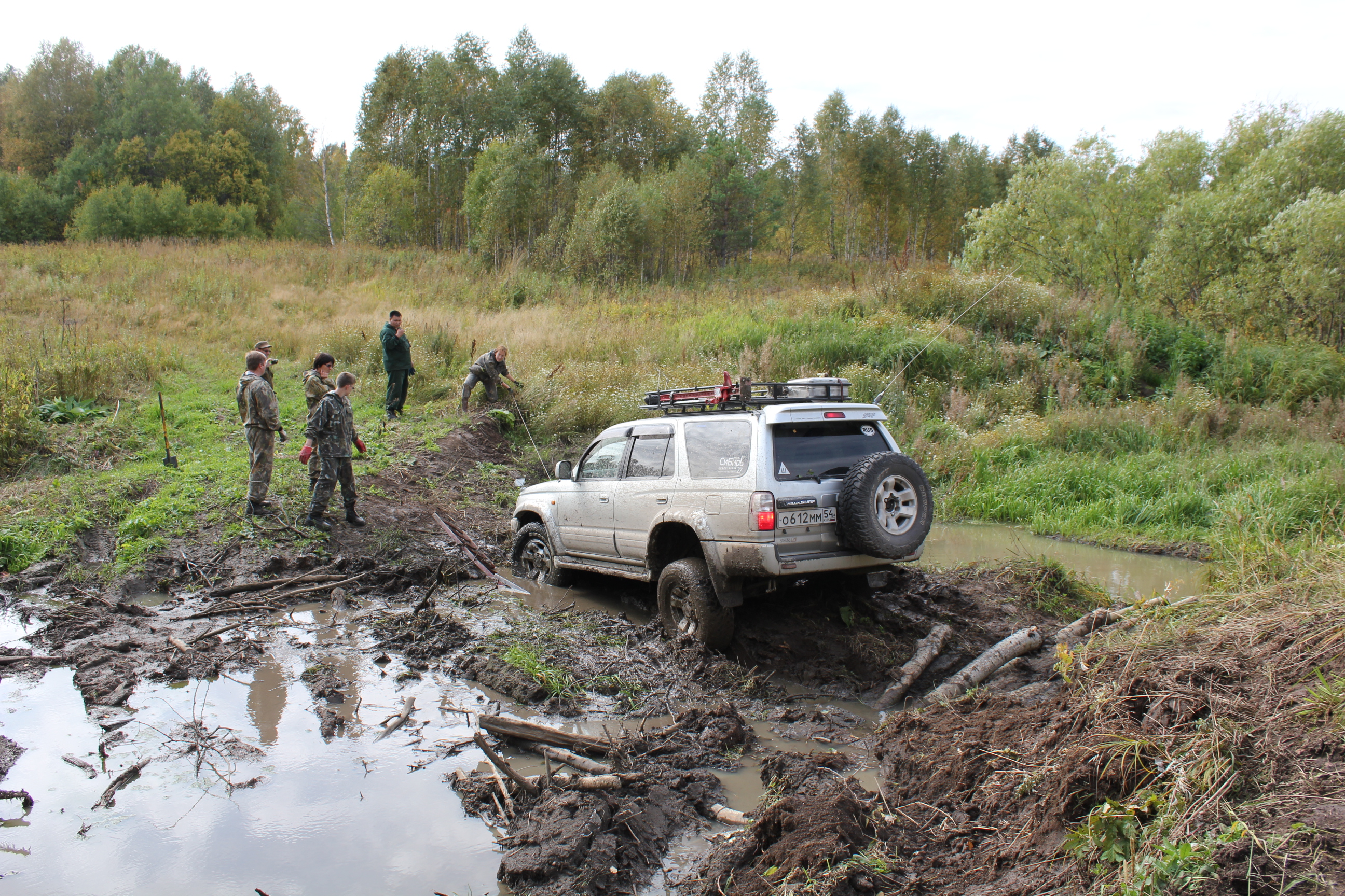 Серьёзная засада, никто самостоятельно не выехал. Хорошо, что был удлинитель для лебедки. С помощью него и выдернули Прибоя, ну а потом он нас всех повыколупывал