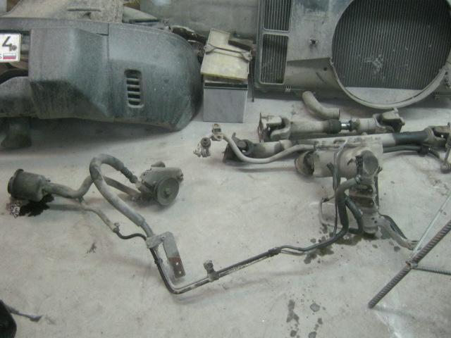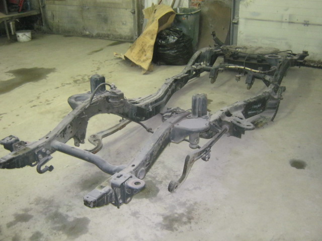 Снимаем защиту агрегатов, систему выхлопа: Снимаем насос гидроусилителя вместе с рулевым редуктором и всеми соединительными трубками, оба карданных вала, задний стабилизатор поперечной устойчивости: Далее откручиваем подушки двигателя и коробки передач, отсоединяем трубки вентиляции коробок, откручиваем кронштейн троса ручника от рамы и... снимаем силовой агрегат целиком: Откручиваем амортизаторы заднего моста, отсоединяем проводку датчиков ABS, отсоединяем вентиляцию моста, откручиваем пять рычагов и выкатываем мост: Продолжение следует.....