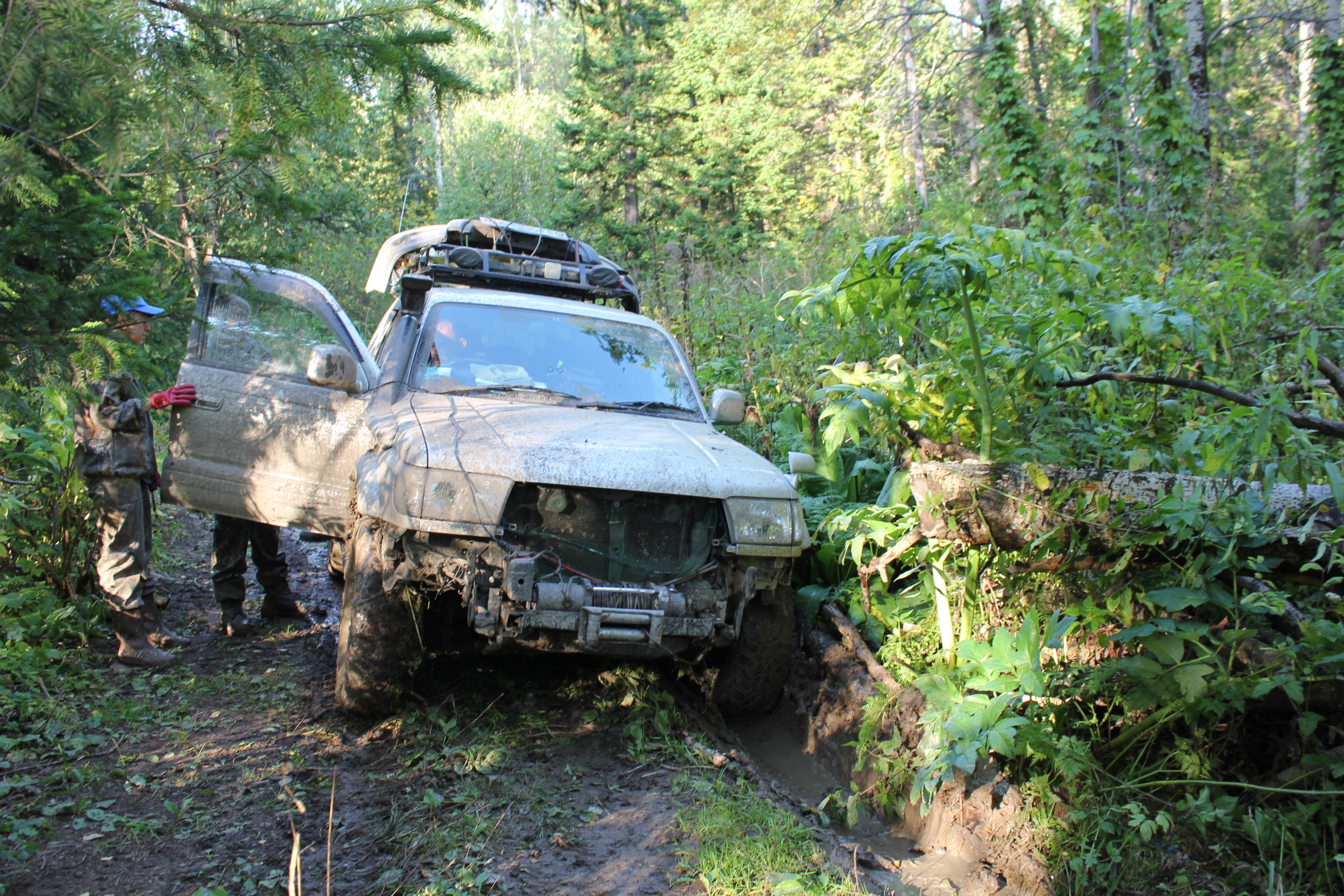 Серьёзная засада, никто самостоятельно не выехал. Хорошо, что был удлинитель для лебедки. С помощью него и выдернули Прибоя, ну а потом он нас всех повыколупывал