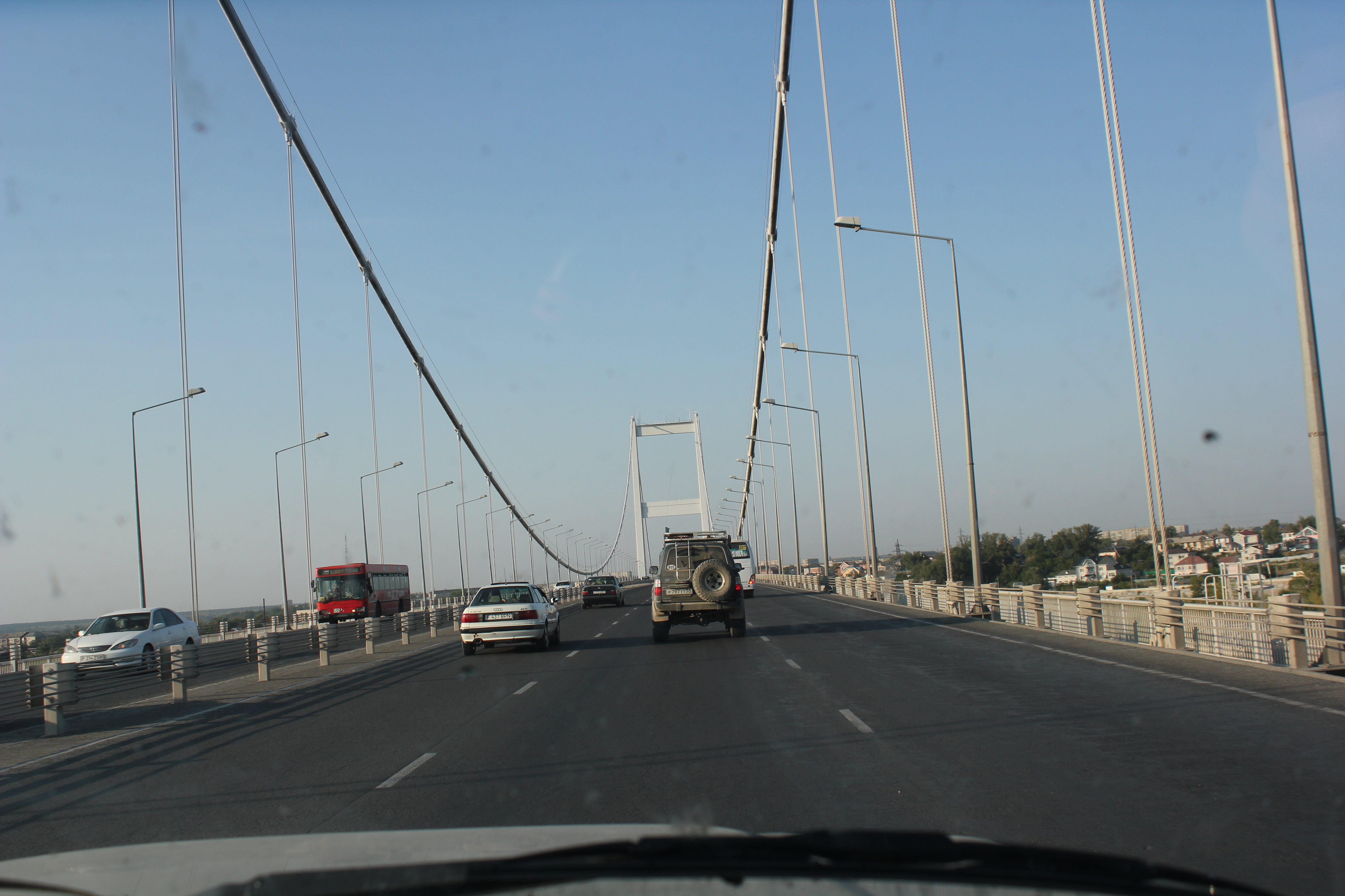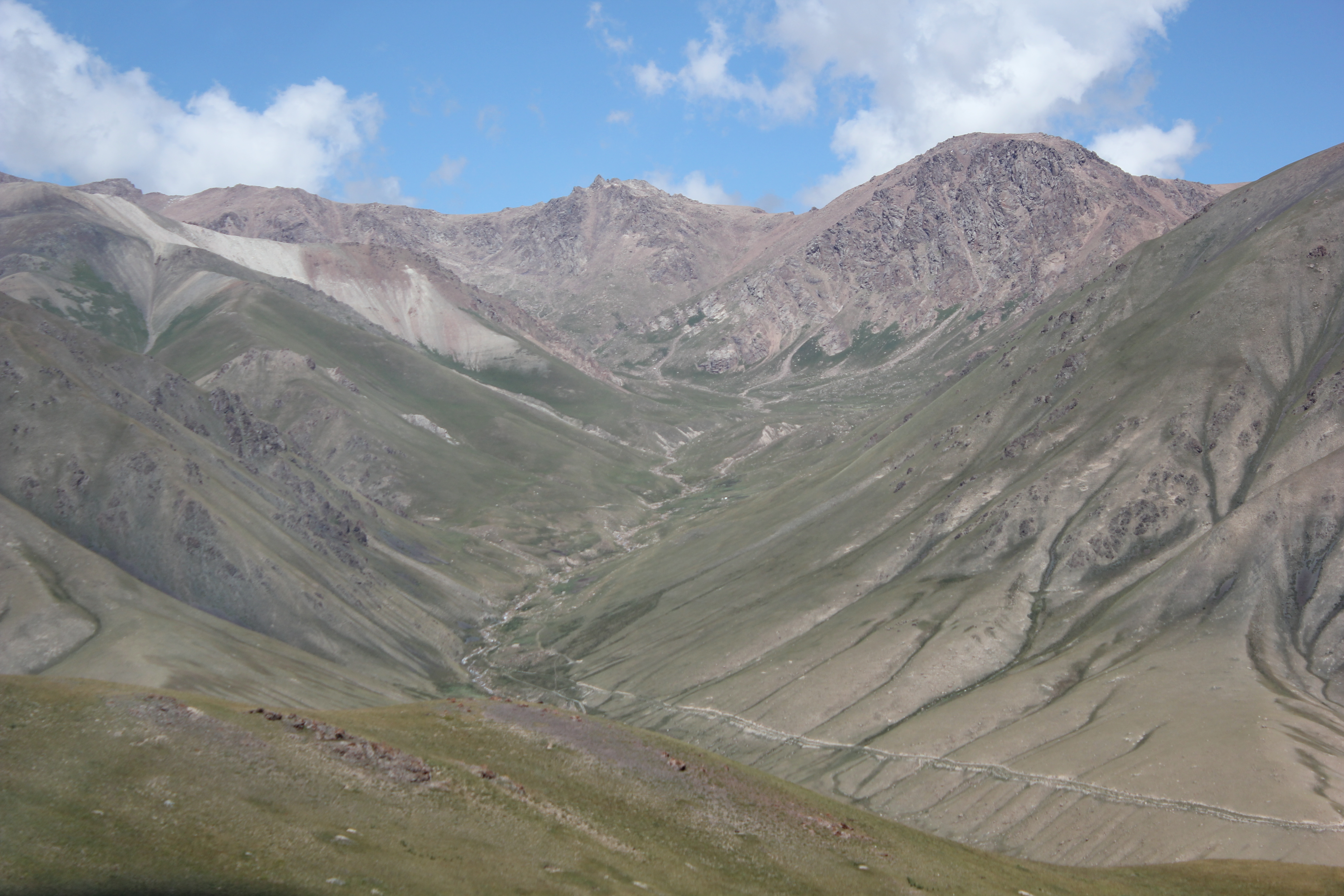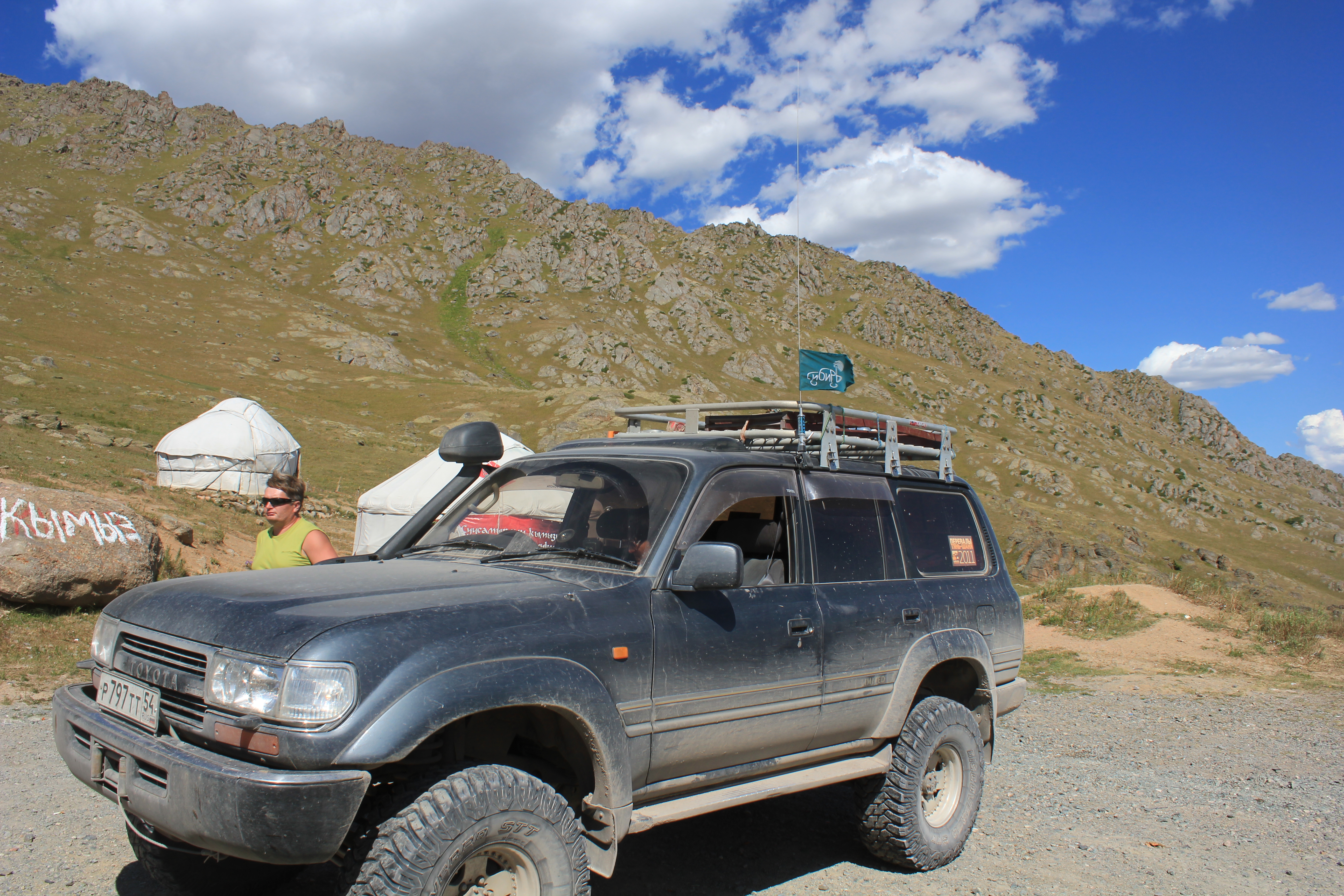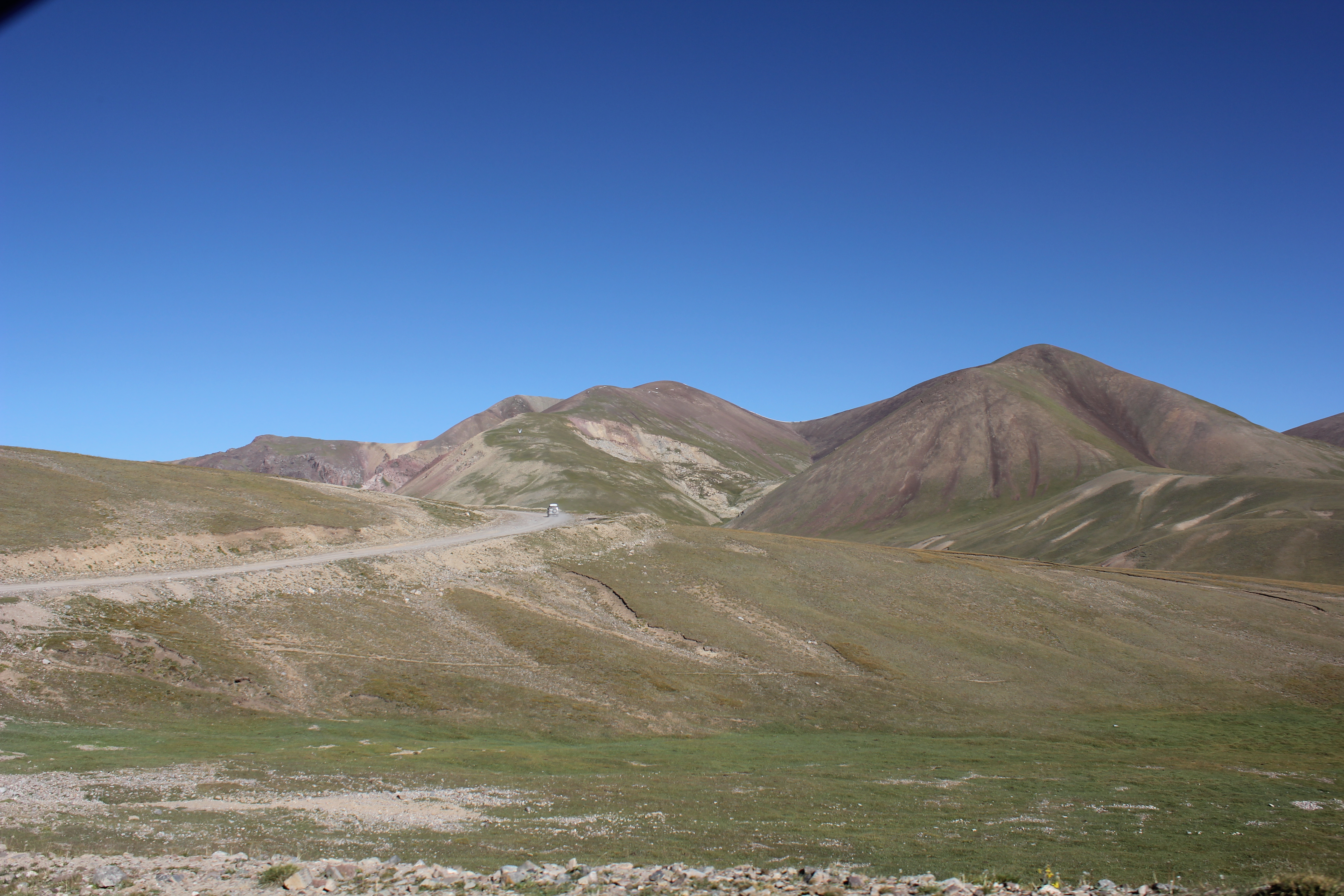 перевал Тюя-Ашу, пришлось включать понижающую передачу в раздатке, так как на повышенной не мог заехать, высоко, машина совершенно не тянет и очень сильно греется, поднимался с включенными на всю катушку печками. Перепад высот почти 2 км. А потом длинный-длинный спуск до Кара-Балты почти 30 км едешь вниз. Фуры едут очень медленно. Туннель на вершине перевала почти 2 км длинной, местные там гоняют, совершают бездумные обгоны, не соблюдают никаких правил.