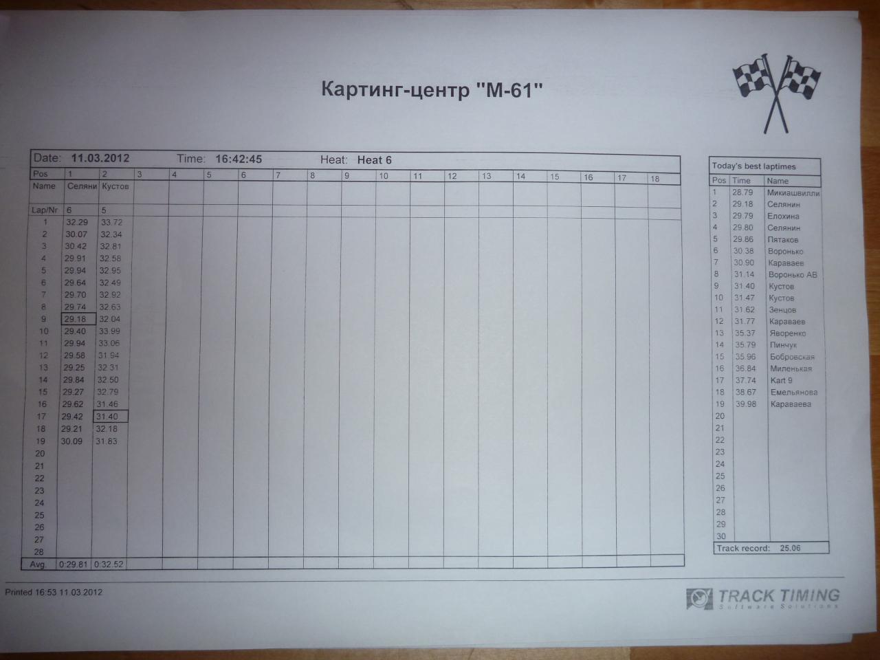 19 кругов? сколько времени заняло? в зачёт средний результат жеж идёт? или лучший. выделен же лучшийМиротворец писал(а): До совершенства ещё четыре с лишним секунды с круга.