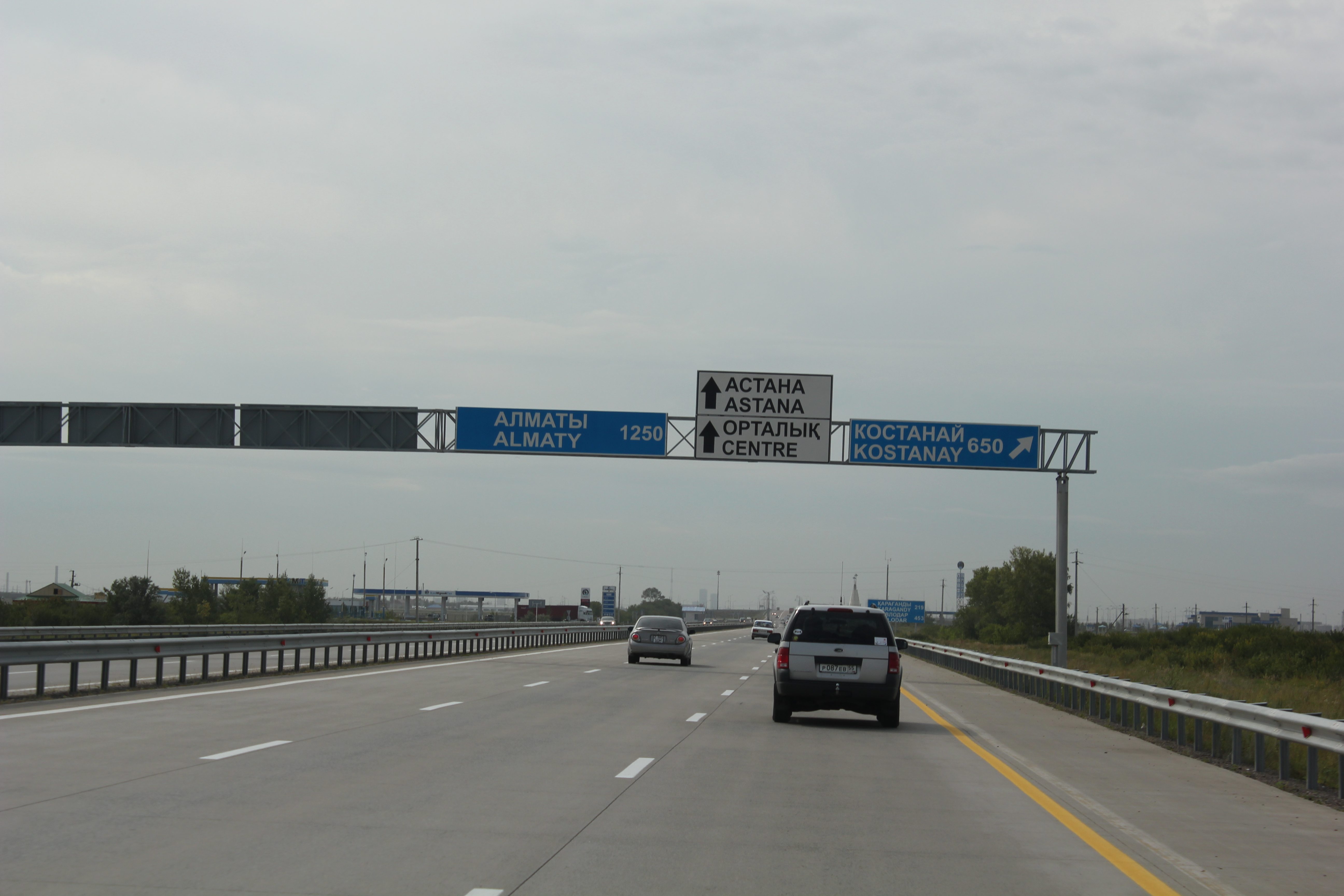 дороги в Казахстане разные, но встречаются такие, по каким я ни разу в жизни не ездил - АВТОМАГИСТРАЛЬ с настоящем своём смысле слова, трехполосная в каждом направлении, сделанная совершенно изумительно.