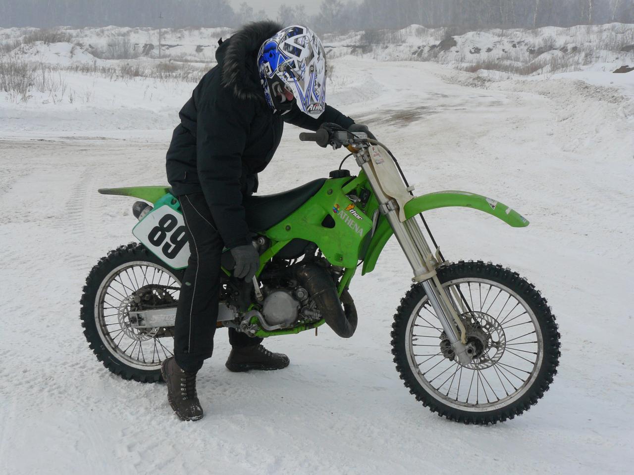Мот Кава Кх125, если кто хочет попробовать(посмотреть,поинтересоваться и тд), зимой(с условием что ездили на моте летом), Желательно конечно чтоб была защита, или хотя бы толстая обувь и одежда, потому как травмоопасно это может быть. Из защиты, могу предложить только шлем свой, кажись 54 размер.