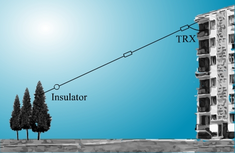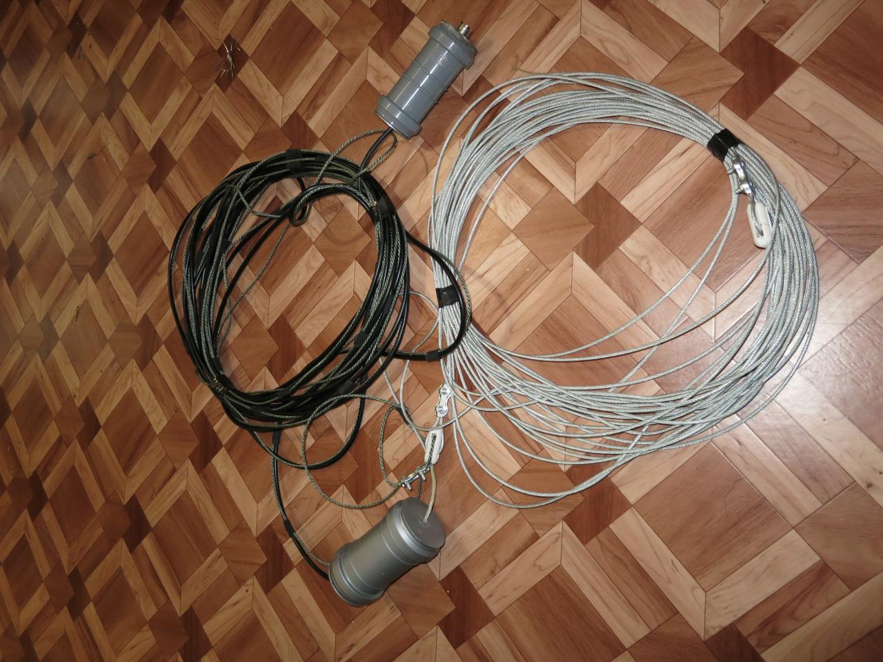 Вторая часть антенны изготовлена из стального троса 2 мм в оболочке. По краям антенны керамические изоляторы.