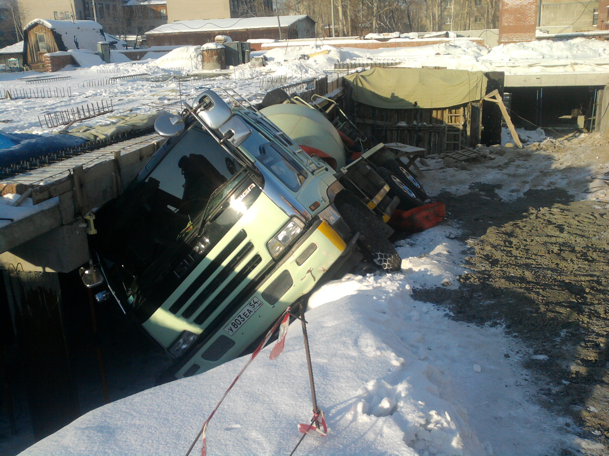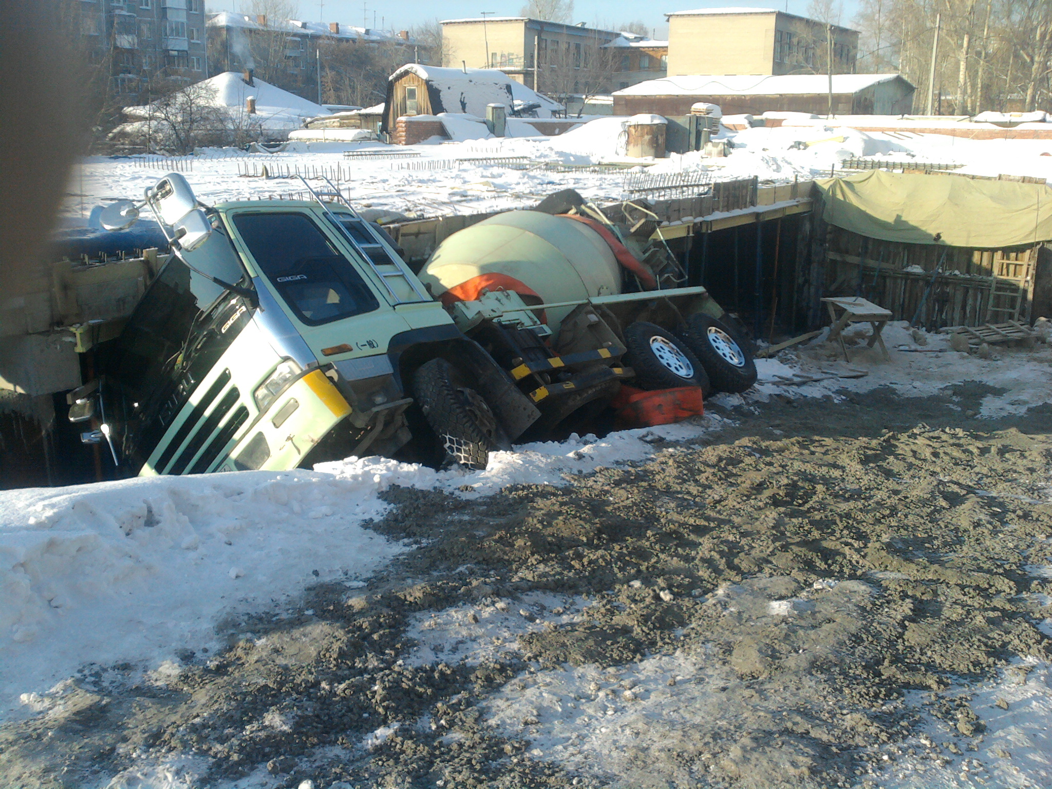 Похоже ентот Миксер живёт там, даже следов от колёсов не видать. А если он с бетоном, то сколько килограммов получается? Кран однако скоро рядом ляжет.