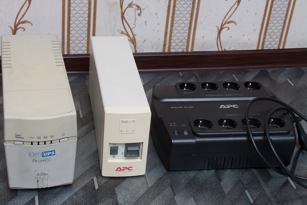 Собственно, есть OPTIUPS POWER ES420, использовался как преобразователь в 220В в машине во время покатушки до Средиземного моря. Питал ноутбук с навигацией и заряжал все телефоны и фотоаппараты. Отдаю, т.к. сколхозил более компактное устройство. На фото он слева