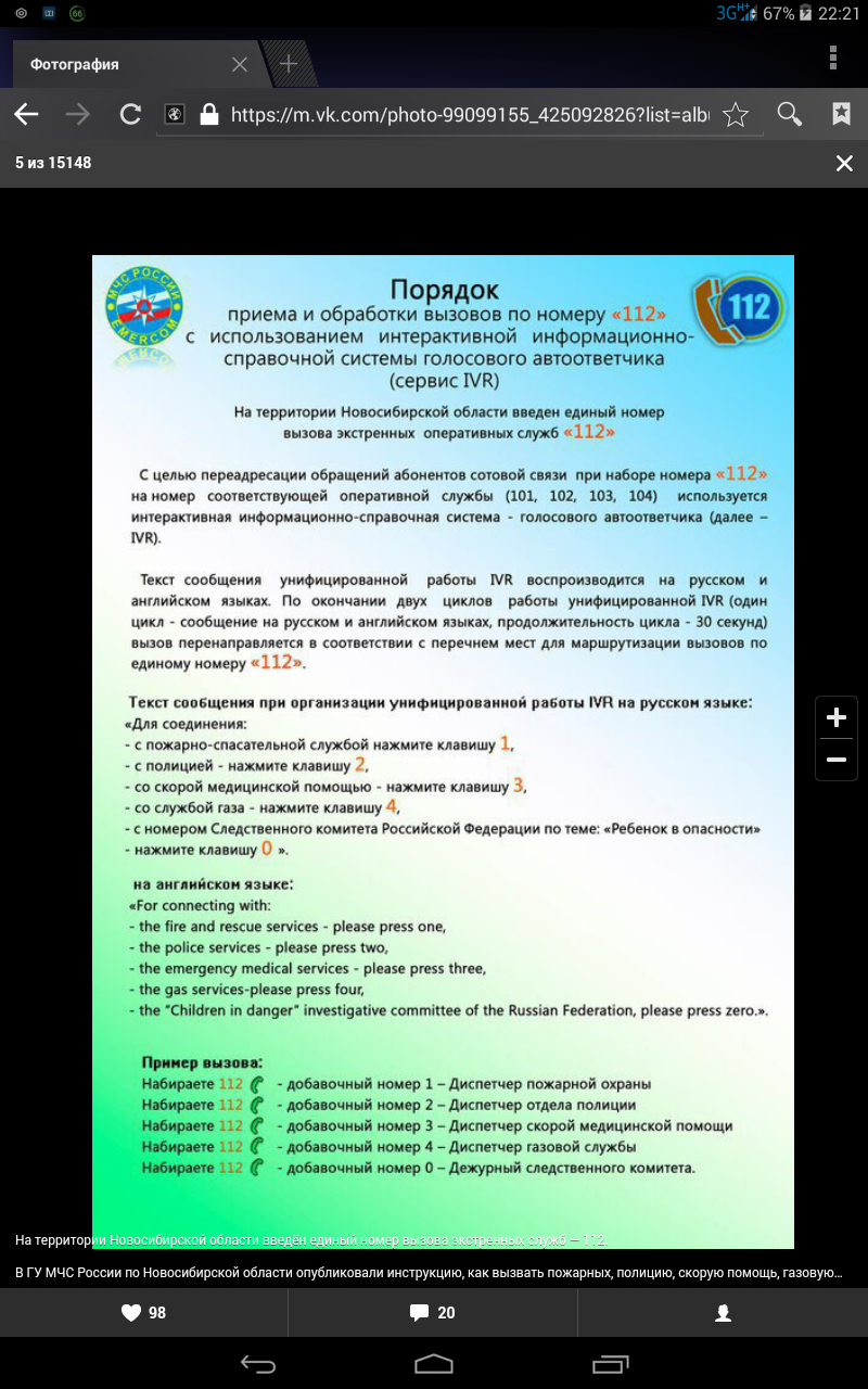 На территории Новосибирской области введён единый номер вызова экстренных служб — 112.