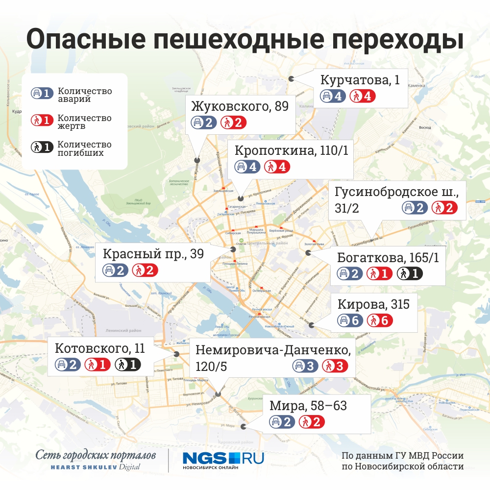 5 самых опасных перекрёстков Новосибирска